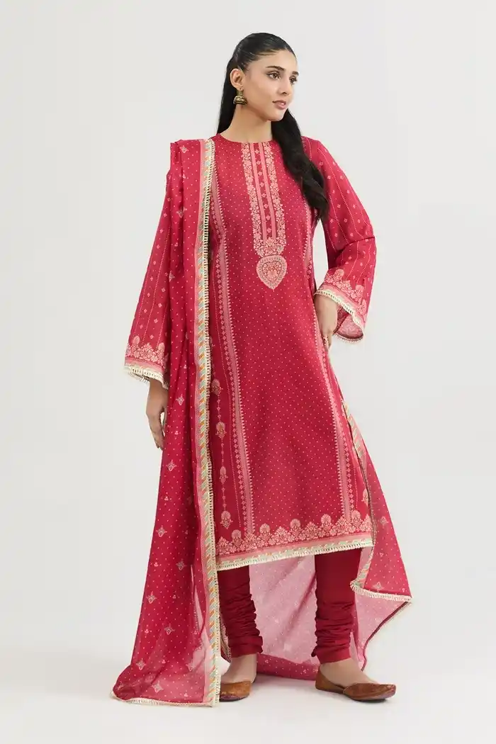 3-piece printed unstitched suit Rs:4,190 Rs:2,933 only.