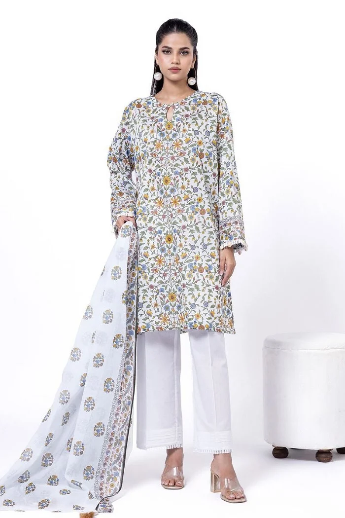 Let’s update your summer closet with this lovely off-white color printed lawn 3piece suit Rs:5,500 Rs:3,575.