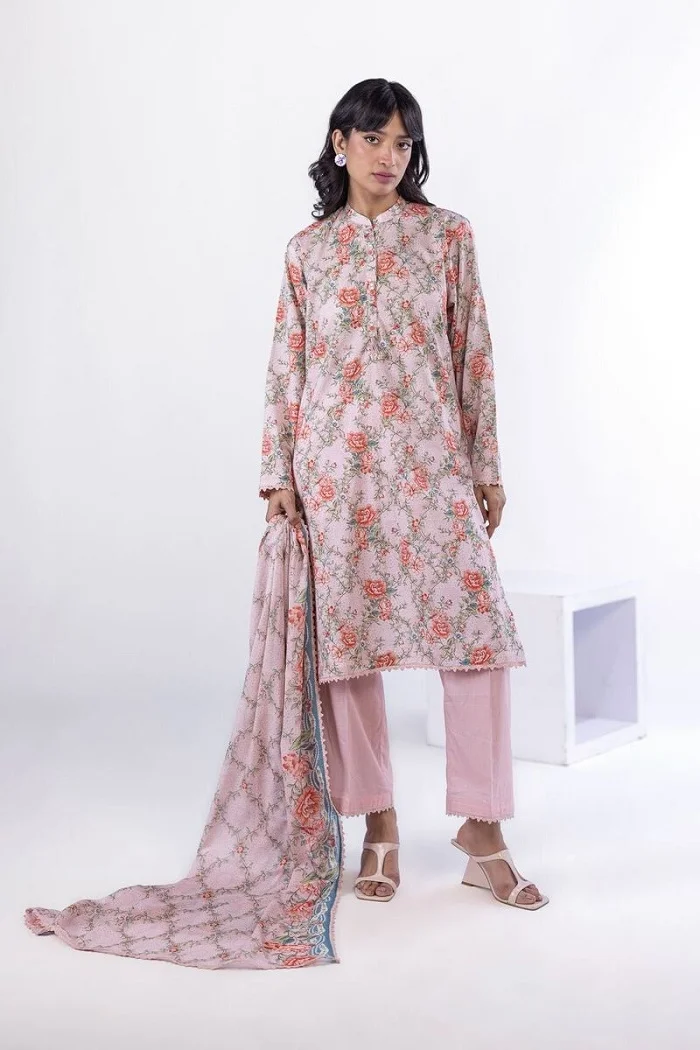 Pink color printed lawn 3-piece suit with matching dupatta Rs:5,500 Rs:3,575Â only.