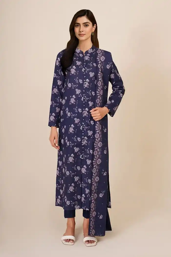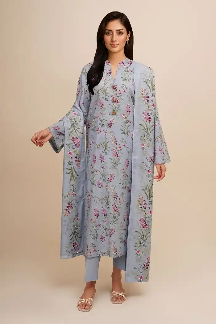 Blue color khaddar 3-piece winter suit available for Rs:3,990Â only.