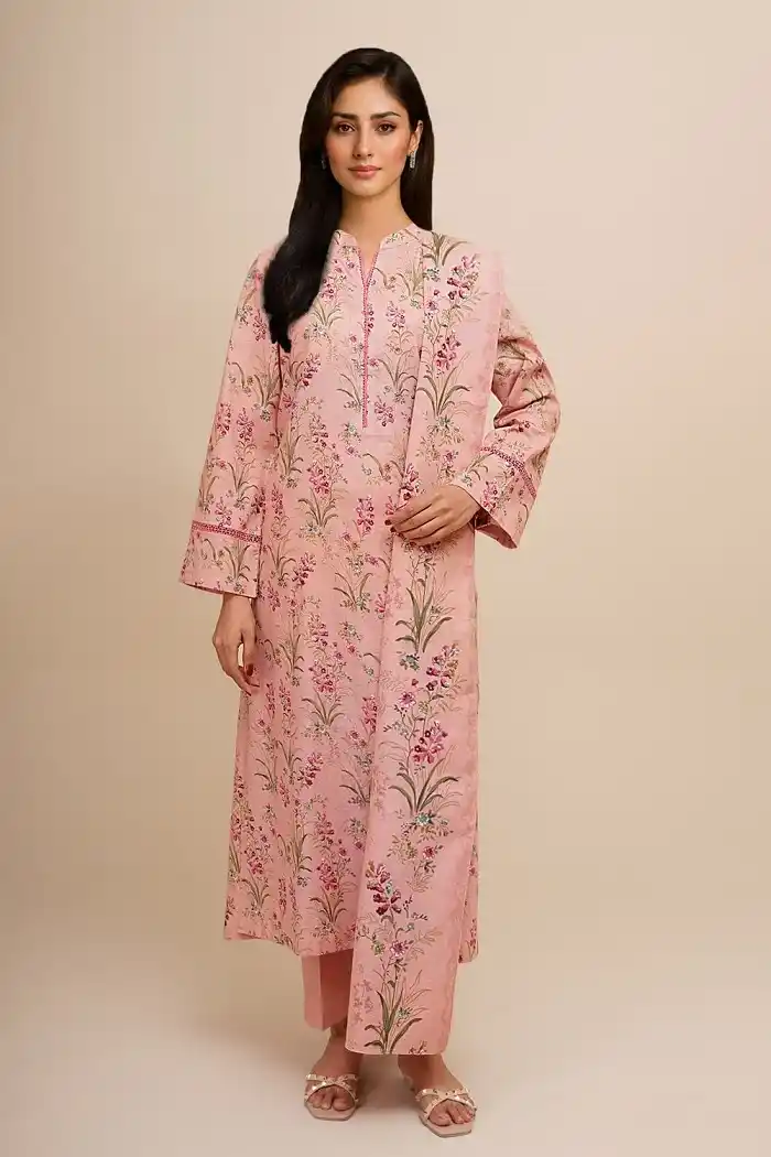 Pink color 3 piece khaddar suit Rs:3,990 only.