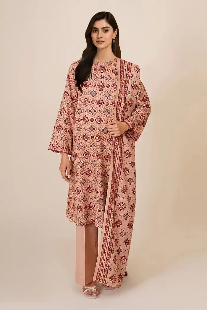 Let’s refresh your winter look by wearing this 3p khaddar suit PKR:4,890.