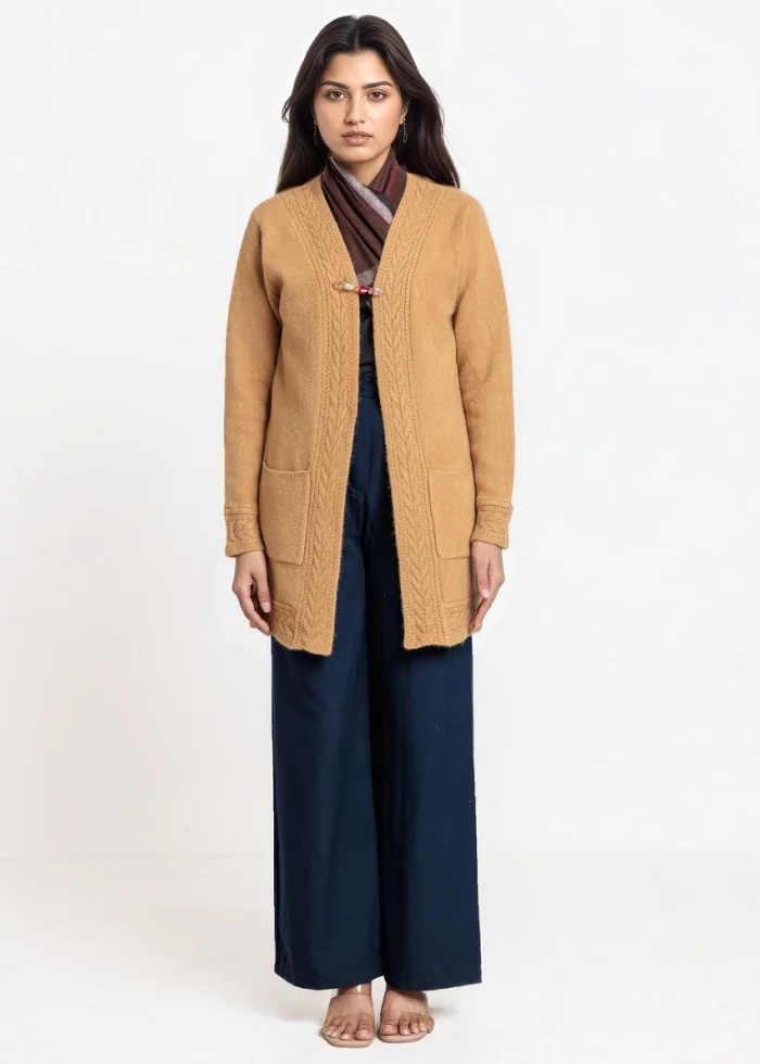 Stylish beige color full sleeves v-cardigan sweater PKR:18,280 PKR:11,290.