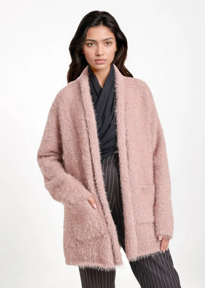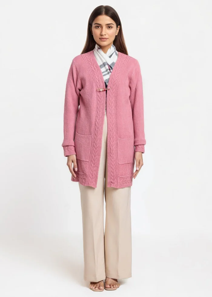 Stylish pink color ladies’ wear v-cardigan available for Rs:10,790.