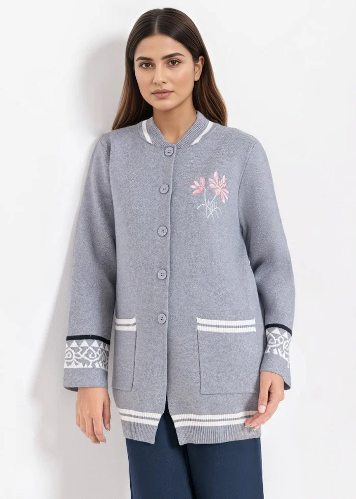 Ladies’ winter grey color cardigan for Rs:8,590 only.