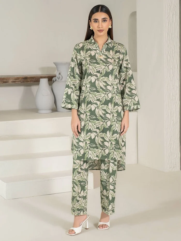 Green color 2 piece khaddar printed unstitched Rs:1,999 Rs:1,599.