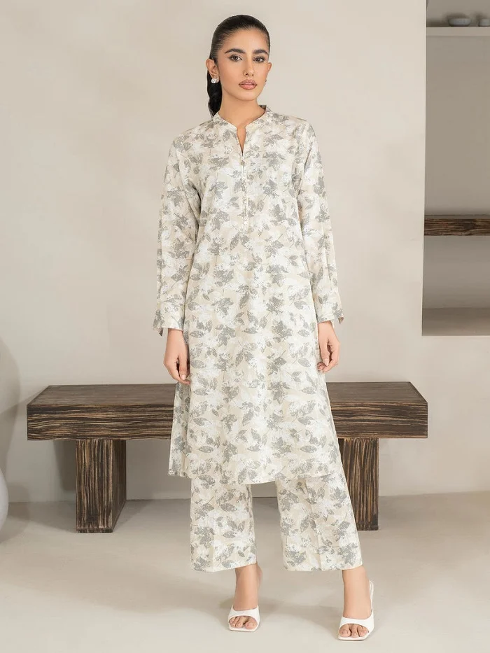 Beige color 2 piece khaddar printed suit Rs:1,999 Rs:1,699 only.