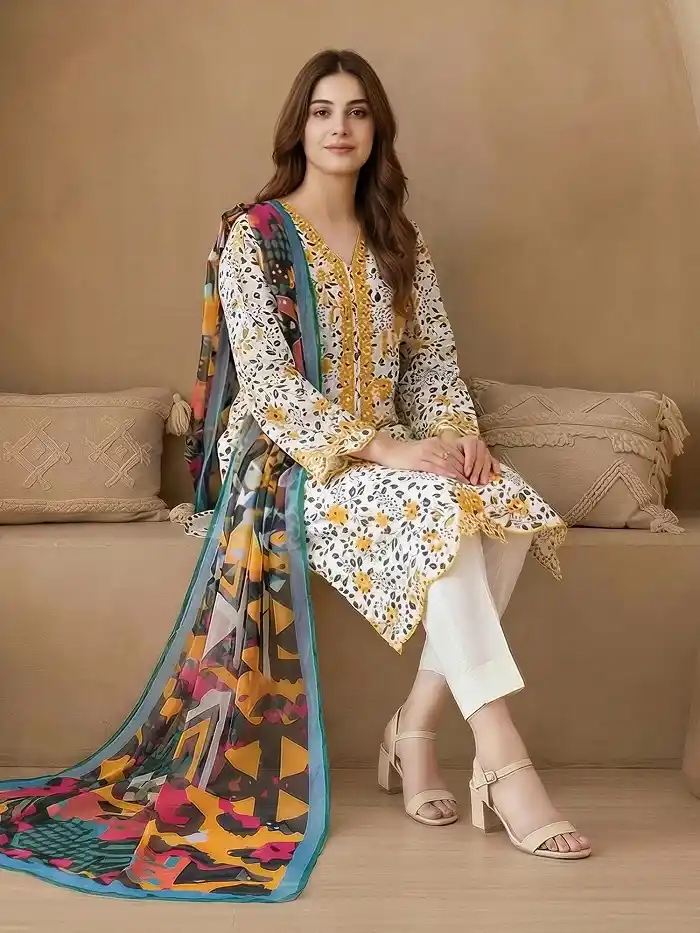 Let’s enhance the perfect summer look by wearing this lawn 3p suit PKR:3,699.