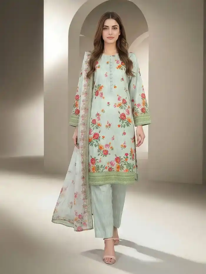 Let’s enhance your summer look by wearing this 3-piece printed lawn unstitched suit for Rs:6,999.