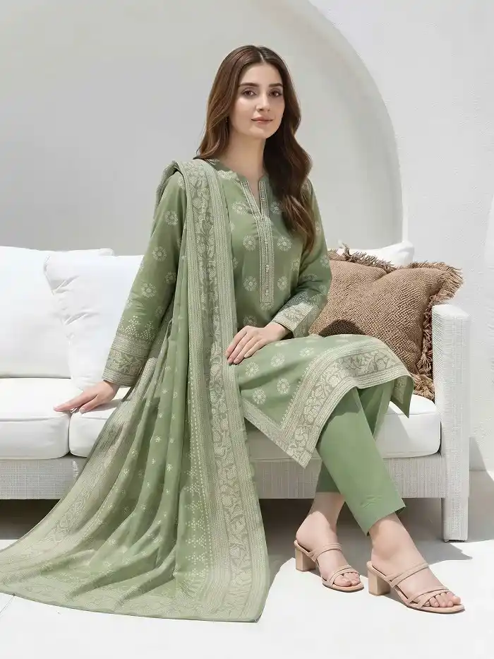 Embroidered lawn 3-piece – Sea Green Color- Rs:4,299 only.