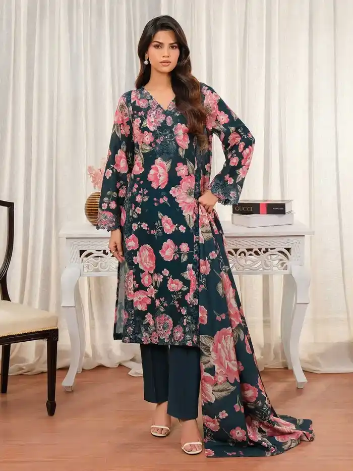 Embroidered 3-piece unstitched suit PKR:4,299 PKR:3,899 only.