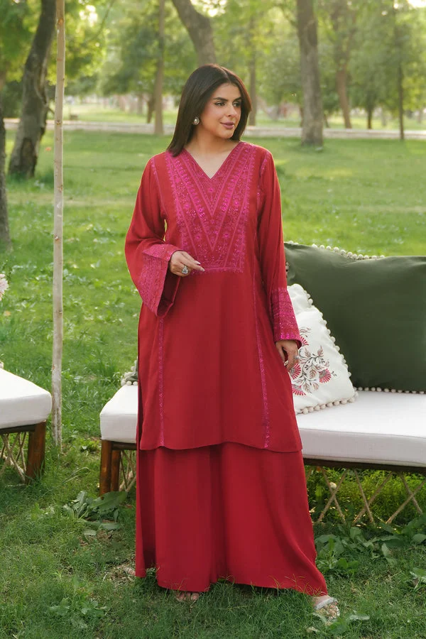 Maroon velvet v & round neck shirt PKR:6,999 only.