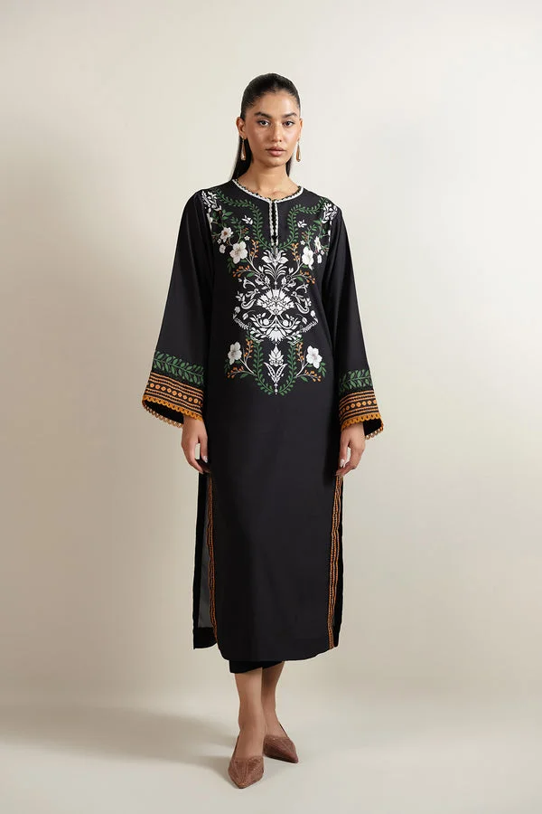 Latest black color winter floral printed shrug PKR:6,999 only.
