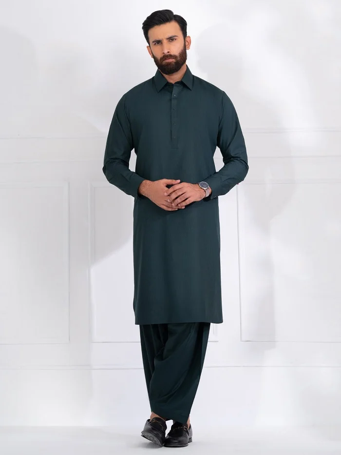 Classic fit green color kameez shalwar for men’s wear available at a sale price for Rs:10,600 Only.