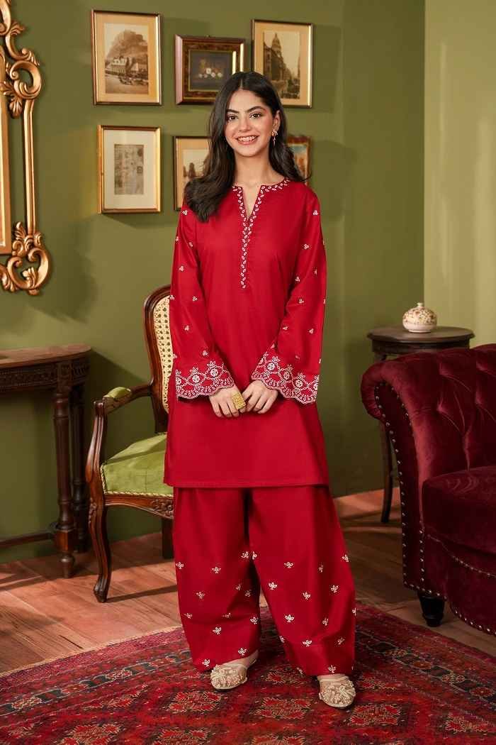 Red embroidered kameez & shalwar Rs:8,990.