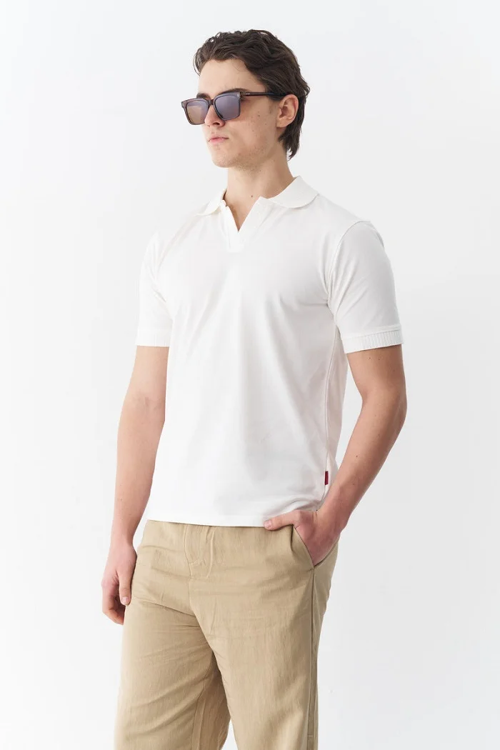 Off-white knitted polo Rs:5,850 Rs:4,973 only.