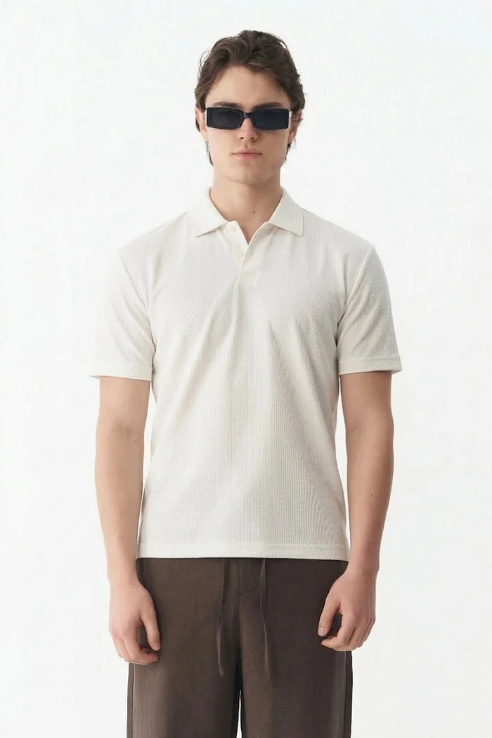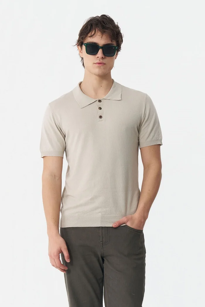 Lightweight breathable oat brown knitted polo shirt for men’s wear Rs:6,850 Rs:5,138.