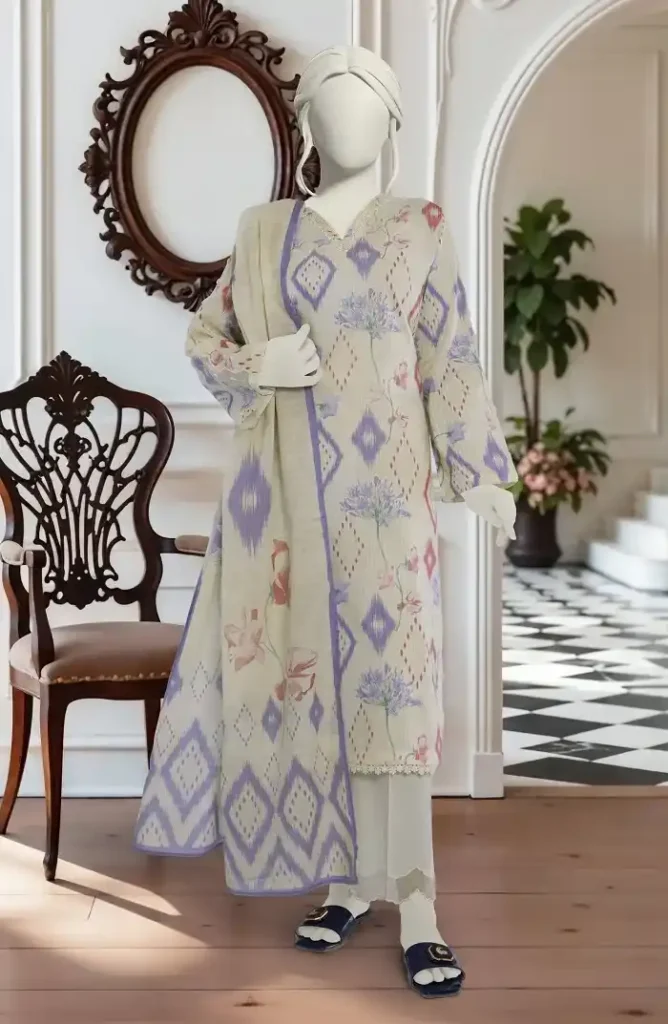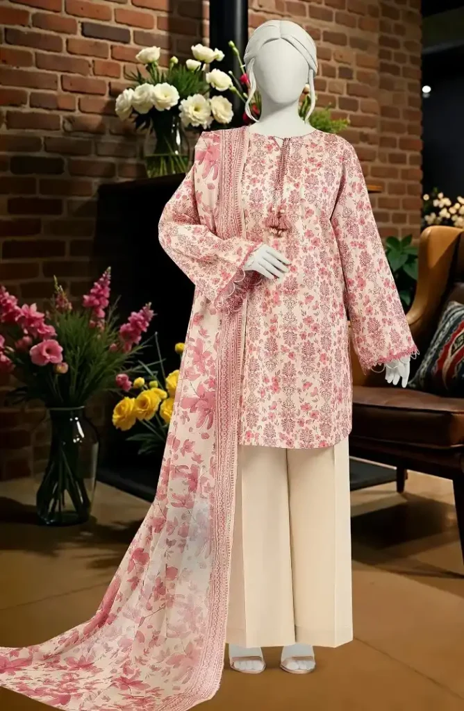 Summer’25 printed lawn 3pc unstitched suit Rs:4,190 Rs:3,143 only.