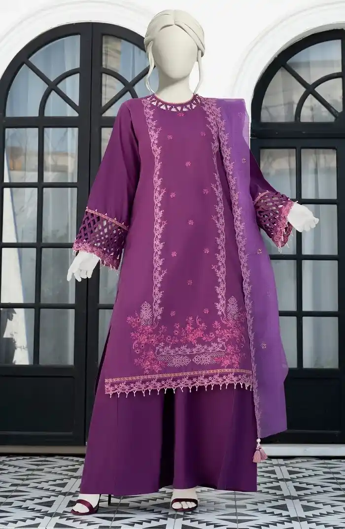 Purple embroidered 3 pc unstitched suit Rs:6,990 Rs:4,194.