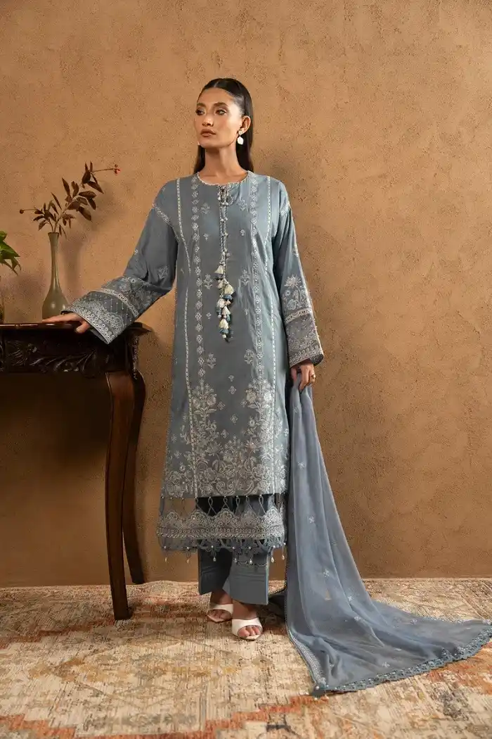 Powder blue lawn embroidered luxury 3piece suit PKR:9,990.