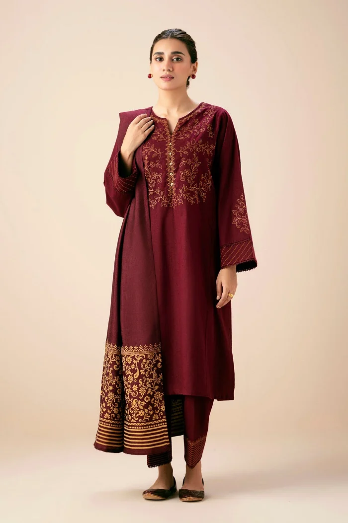 Maroon embroidered 3pc suit Rs:15,990 Rs:7,995.
