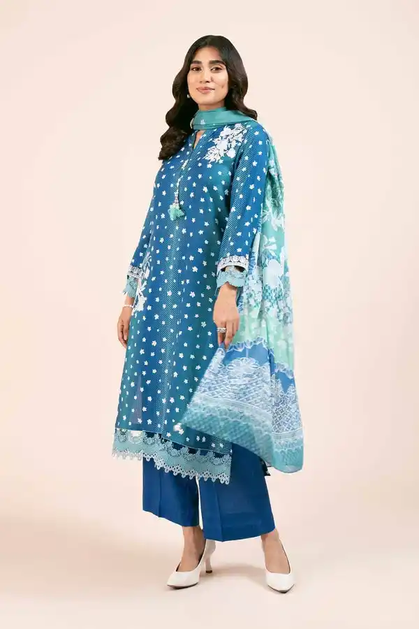 Upgrade your evening outdoor look with this 3-piece cotton blue color suit PKR:6,490 PKR:3,894 only.