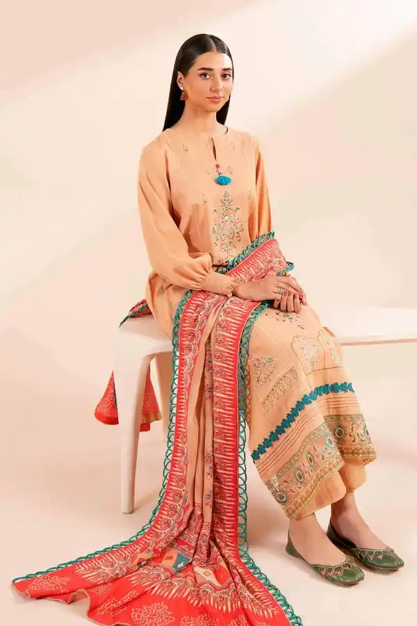 2 piece jacquard embroidered orange color suit PKR:5,990 PKR:3,495 only.