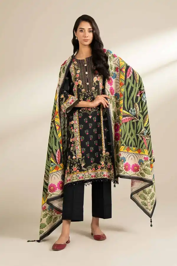 Black & Pink lawn 3-pc printed embroidered suit PKR:7,490 PKR:4,494 only.
