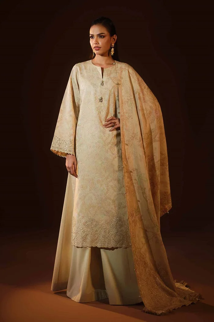 Let’s get the modern style winter look with this beige color suit Rs:11,990.