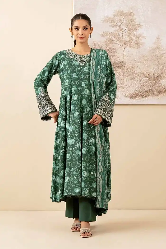 Dark teal green 3 piece khaddar digital printed suit Rs:6,490 Rs:3,568.