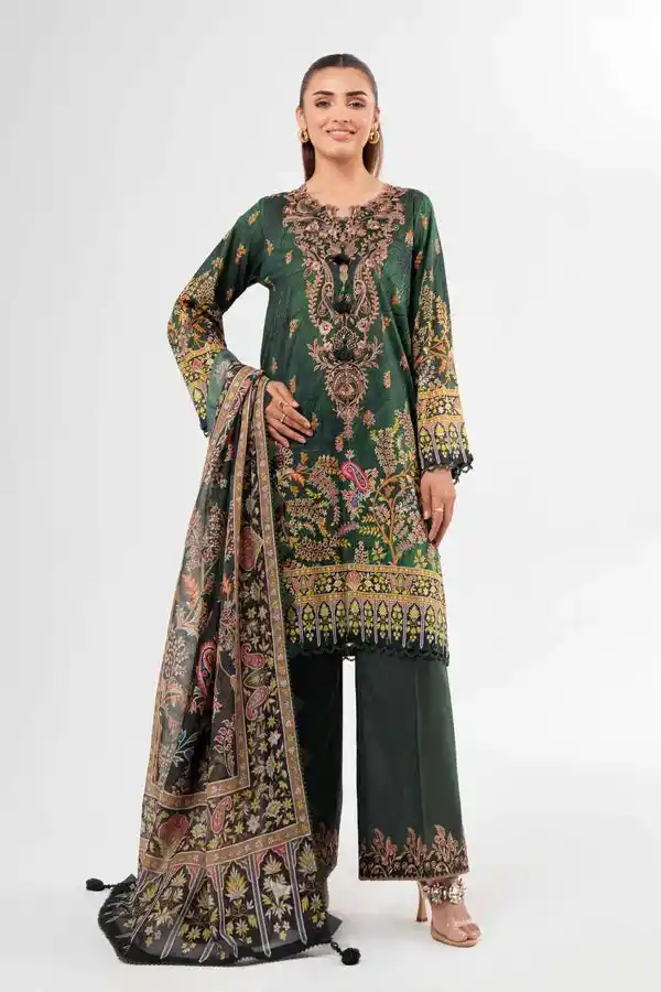Green color 3 piece lawn digital printed & embroidered suit Rs: 8,490 Rs:5,094.