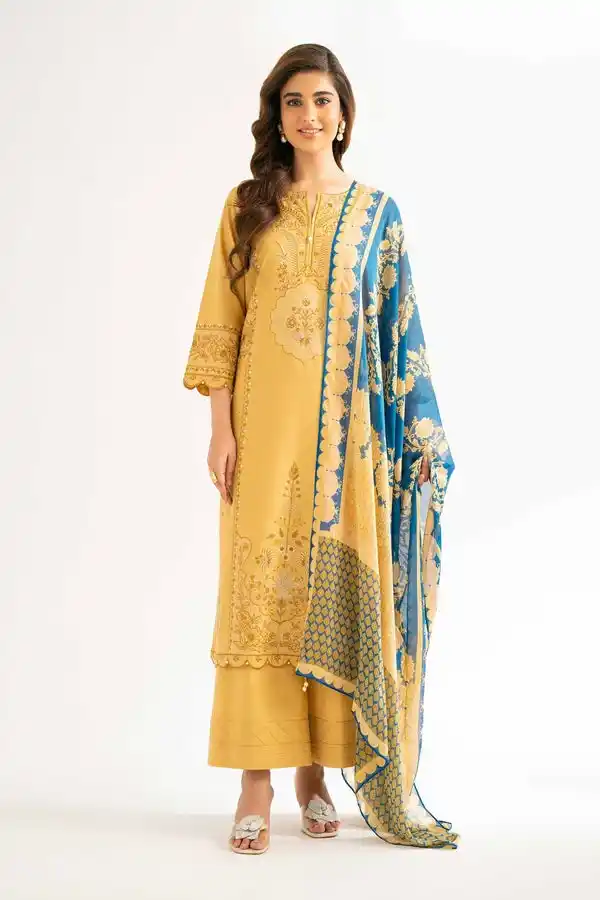 Mustard color lawn 3 piece digital printed embroidered suit Rs: 8,490 Rs:5,094.