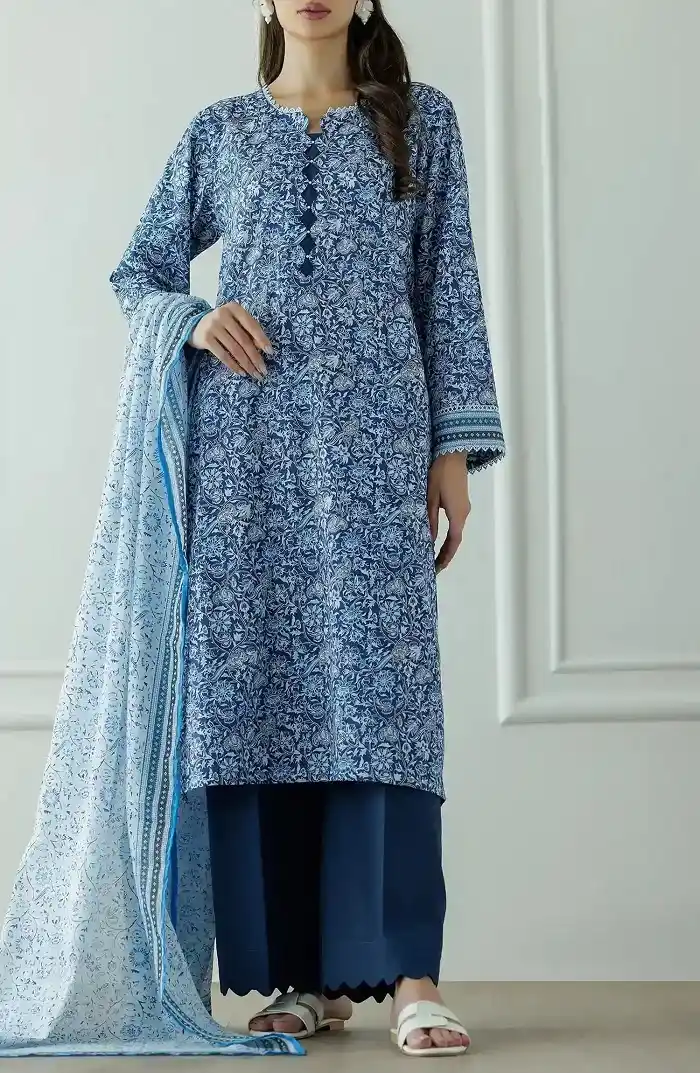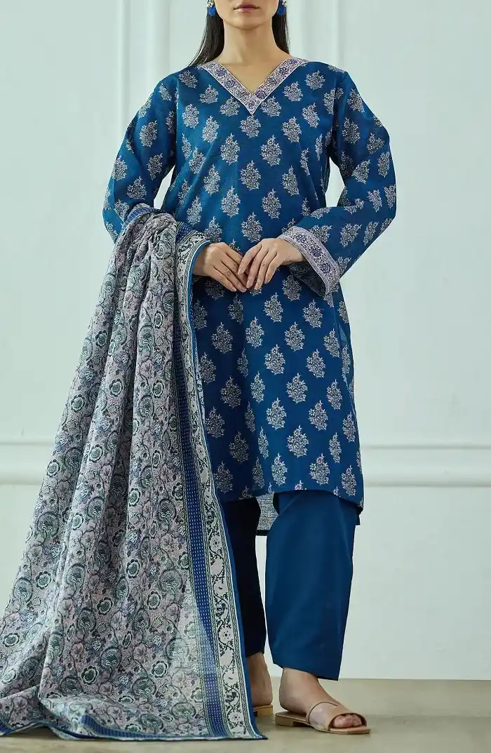 Unstitched 3 piece blue color lawn unstitched suit Rs:4,786 Rs:3,350 save 30% now.