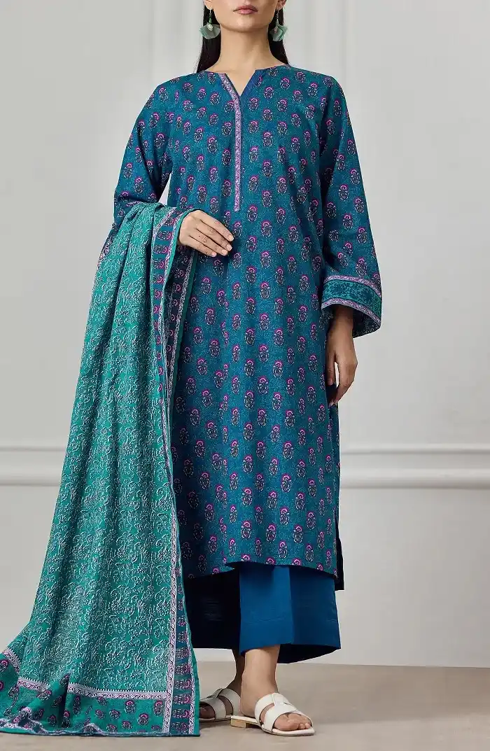 Stylish blue color digital printed 3pc khaddar suit Rs:5,584 Rs:3,350.