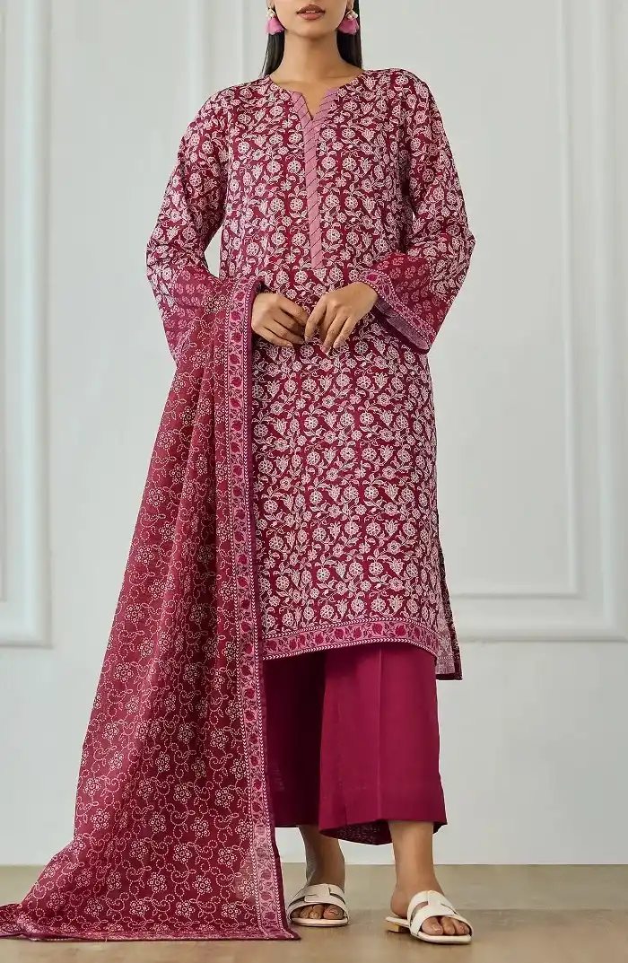 Maroon summer lawn three piece suit Rs:4,613 Rs:3,690.