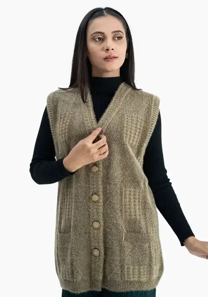 Stylish sleeveless ladies cardigan Rs:7,990.