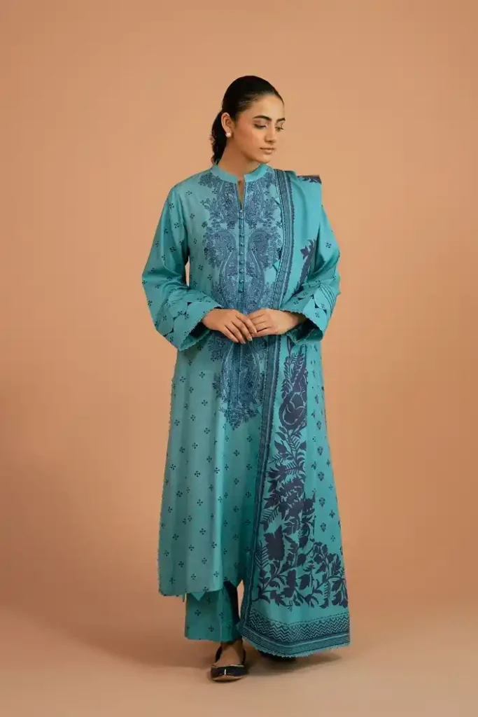 Get a bright summer look by wearing this digitally printed embroidered lawn suit available for PKR:6,990 PKR:5,243 only.