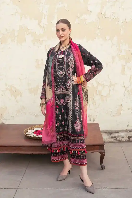 3-piece printed lawn black color embroidered suit PKR:9,990 PKR:8,492.
