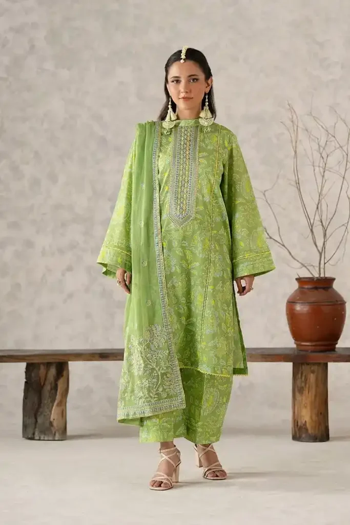 Cotton Lawn 3piece light green color unstitched suit with floral printed PKR:7,192.