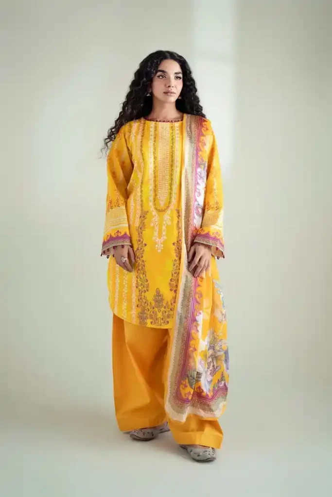 Let’s get a unique appearance this season by wearing this lawn yellow color printed 3-piece suit Rs:4,690 Rs:3,049.