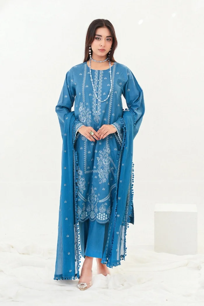Blue color luxury 3pc suit for women available for Rs.7,490 Rs 5,990 save 25% now.