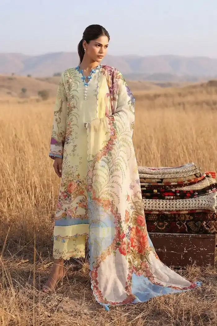 Look more beautiful in this dreamlike outfit by sana safinaz brand, this lawn suit is available for PKR:9,599 Only.