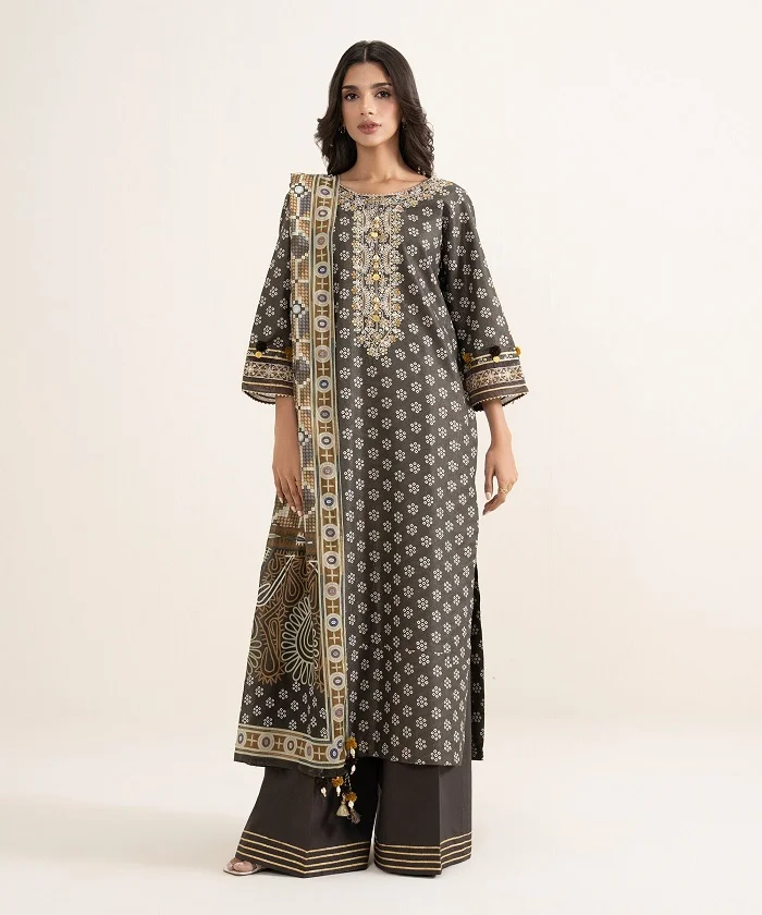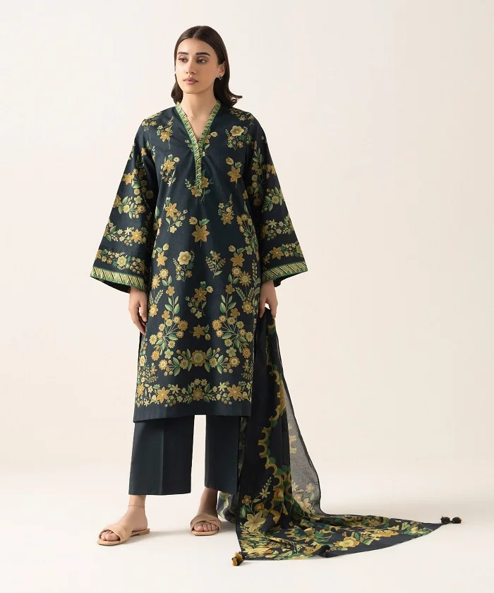 Elevate your style with this black color printed lawn unstitched 3pc suit Rs:3,990.