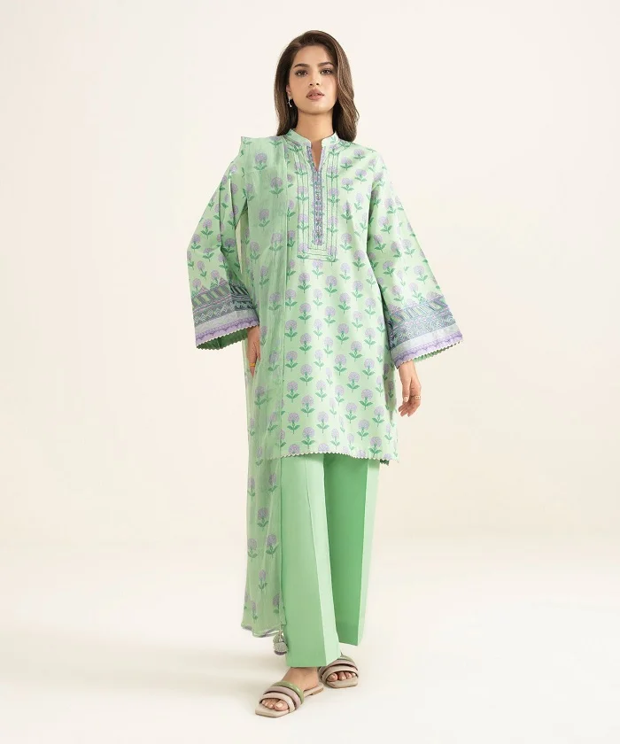 Apple green lawn digital printed unstitched 3pc suit Rs:5,990.