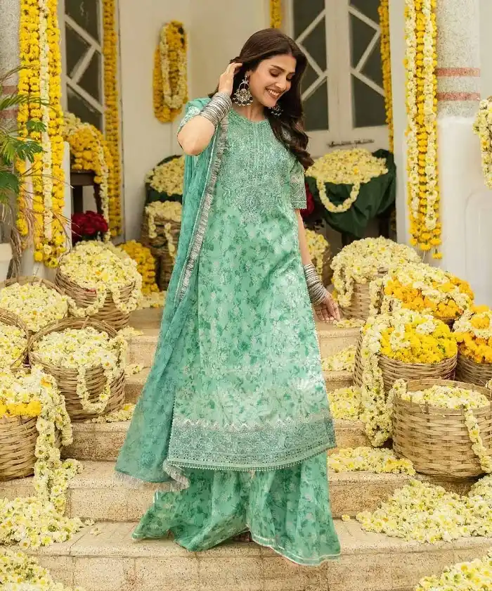 3-piece printed green lawn unstitched summer suit PKR:3,790Â PKR:1,895 only.