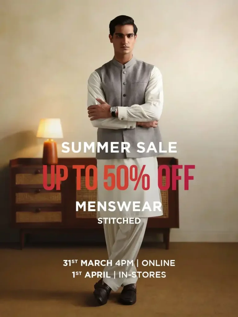 This summer, immerse yourself in a summer sand beige 3pc suit for Rs:3,490 Rs:1,745.