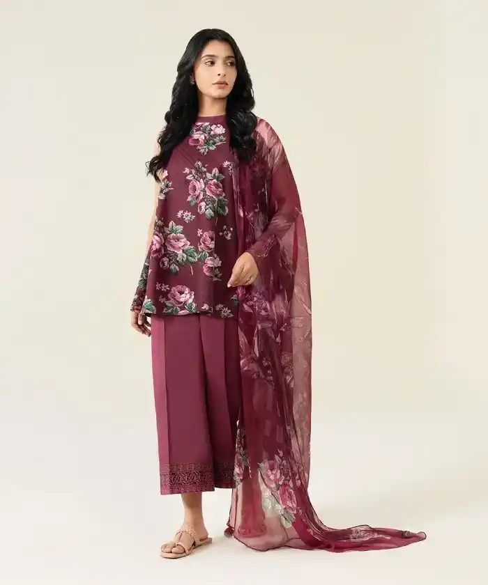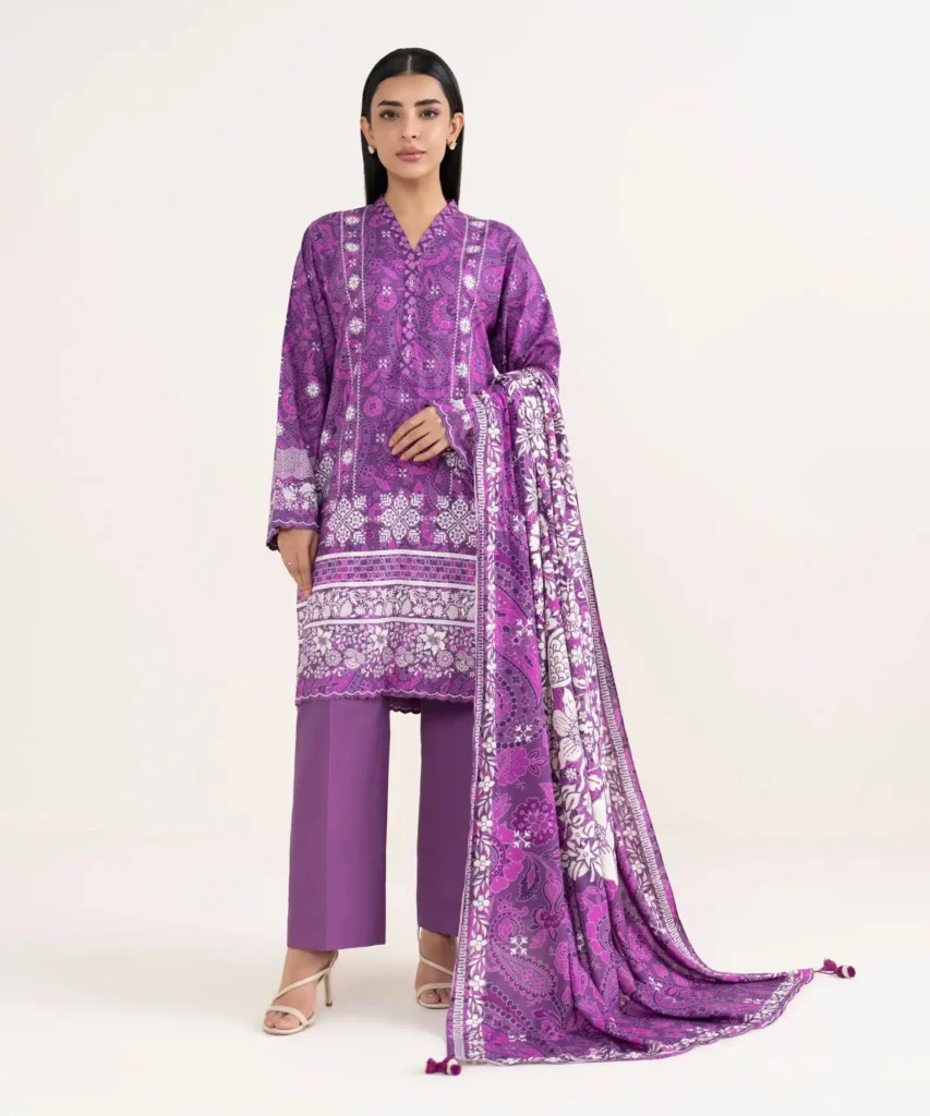 3-pc unstitched plum color summer lawn suit Rs:3,990 Rs:2,394.
