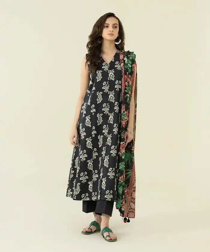3-piece printed unstitched lawn black color suit for women Rs:3,990 Rs:1,995.