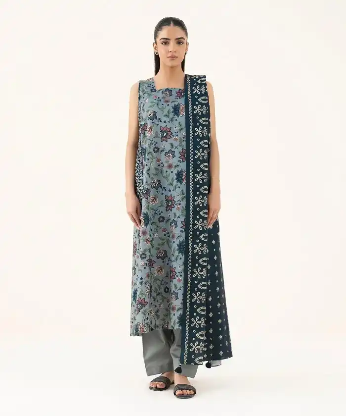 Create a unique new fashion look by wearing this clasic floral blue & green color cotton 3-piece unstitched suit Rs:3,490 Rs:1,745.