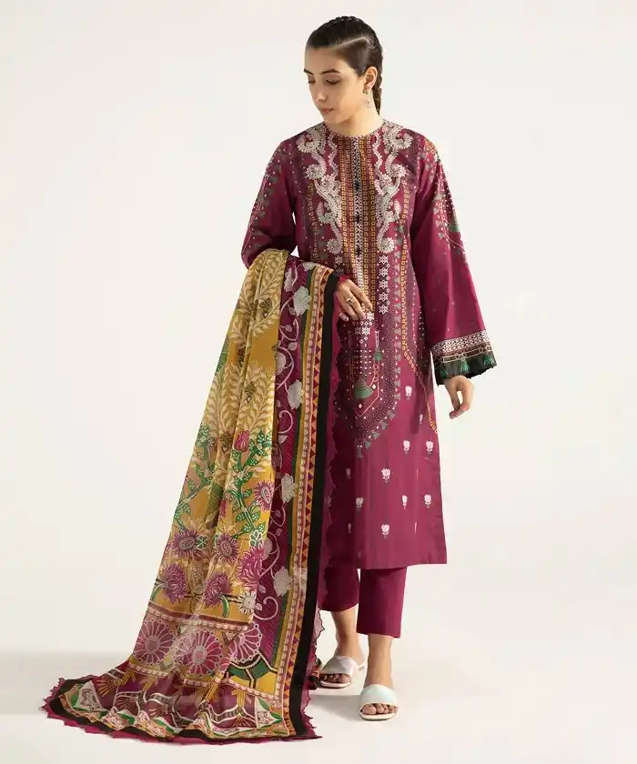 Let’s make a timeless statement in this maroon embroidered 3-piece unstitched suit Rs:4,590 Rs:2,754.